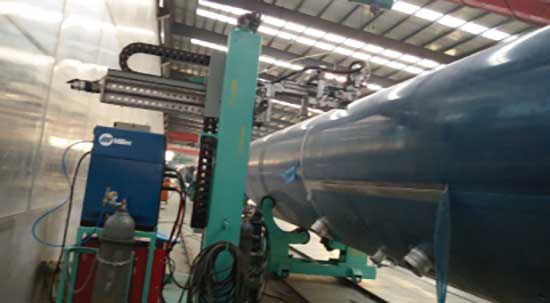 The equipment mainly consists of a cross operating frame, a camera monitoring operating table, a welding power source, a welding seam tracking system, an electrical control system, and a tank displacement device.