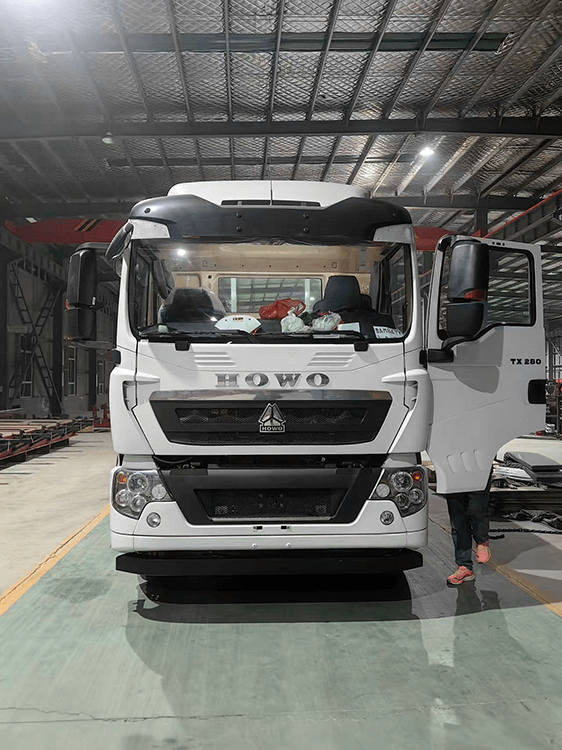 Enhanced Safety & Comfort The TX-M Cabin features a single sleeper and air conditioning for driver comfort. Safety is prioritized with BOSCH steering, ABS (4S/4M), and a unique 4-position camera system for 360-degree visibility. Additional features include intercooler protection and a rear tow hook.