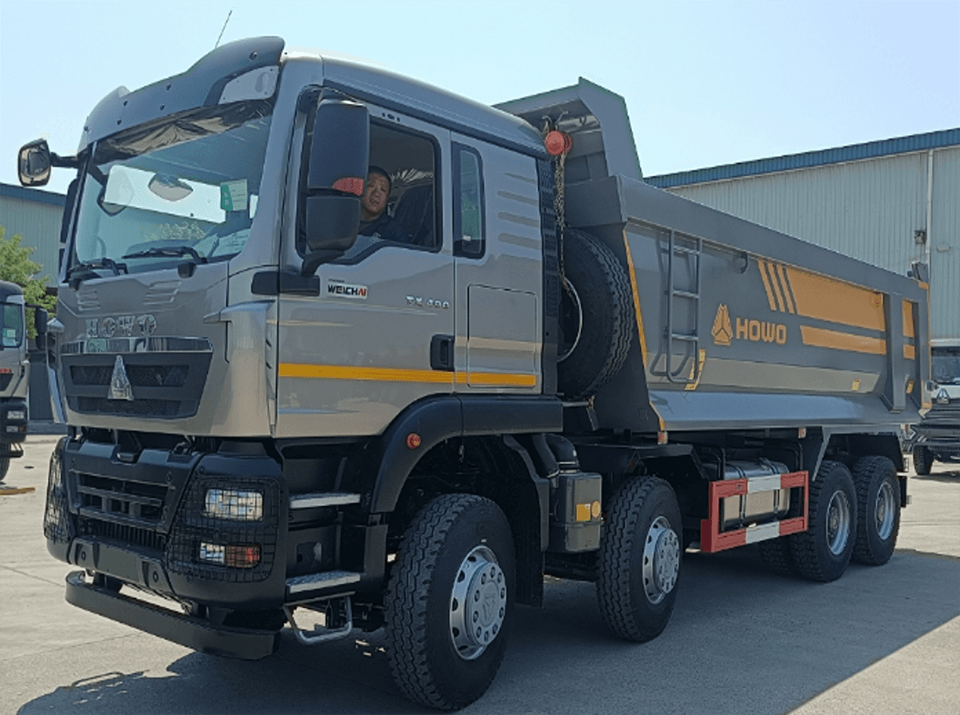Powerful & Compliant Powertrain This 8×4 tipper is driven by the robust WEICHAI WP12S400E201 engine, delivering 400PS (Euro II) for superior towing capability. It is paired with a HW19709XST 9-speed manual gearbox with synchronizers and PTO, ensuring smooth shifting and reliable power transmission.